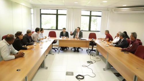 O presidente da União dos Municípios da Bahia (UPB), Eures Ribeiro, e uma comissão de prefeitos foram recebidos na tarde desta terça-feira (17) pelo procurador geral do Estado, Paulo Moreno, na busca de entendimento para o repasse dos royalties do petróleo às prefeituras. No encontro, foi firmado um acordo para que os municípios suspendam ações judiciais e passem a receber o recurso do Governo do Estado da Bahia a partir de janeiro, conforme o compromisso assumido pelo governador Rui Costa durante o Encontro de Prefeitos promovido pela UPB, no último mês de setembro.