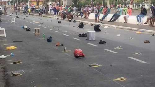 As pessoas tomaram a decisão de colocar no espaço destinado a elas, algum objeto que garantisse a vaga. E todas foram para o muro em frente à agência.